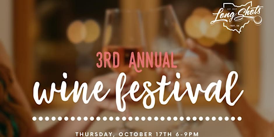 Grab your tickets now for our 3rd Annual Wine Festival! 🍷 Come join us at Long Shots Restaurant & Driving Range for an evening filled with amazing wines and great company. Whether you're a wine connoisseur or just enjoy a good glass, this event is perfect for everyone! Ticket price will include the option to sample up to 30 different wines! You will also receive a custom Long Shots wine glass to use for your tasting & to take home after (+ a welcome pour of bubbly!) Presale ONLY- tickets are available on Eventbrite only. They are limited, so don't miss out! Grab yours here:https://www.eventbrite.com/e/3rd-annual-wine-festival-tickets-927997885657?aff=oddtdtcreator
