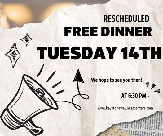 Due to the weather we have reschedule our free dinner to Tuesday 14th @6:30. Thank you for your understanding! We do have a few seats left. Please DM or call 937-980-0590 to reserve your seat and learn about Keystone Wellness.